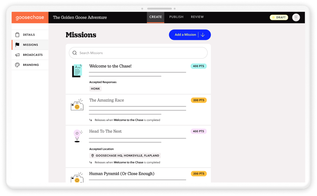 Not just a scavenger hunt. Goosechase helps you create any interactive experience.